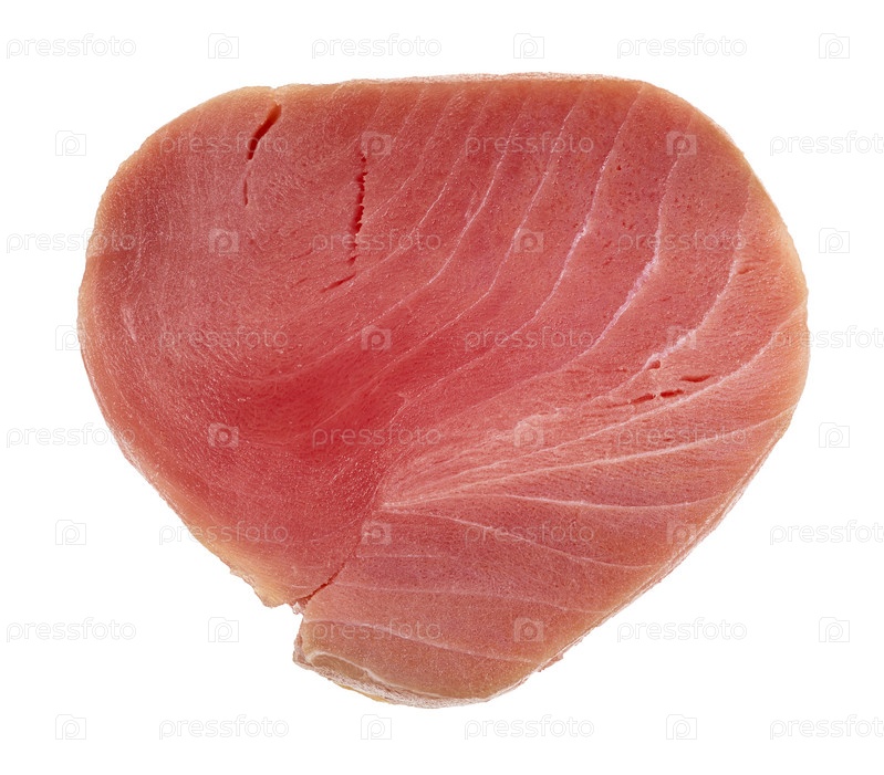 Сырой стейк из тунца, изолированный на белом