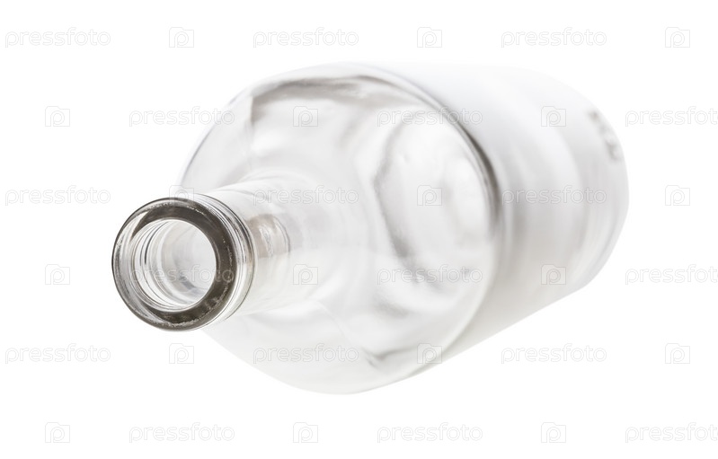Перевернутая пустая прозрачная бутылка, изолированная на белом