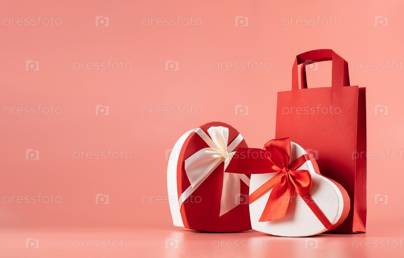 Яркая упаковка для покупок, подарков и посылок на розовом фоне