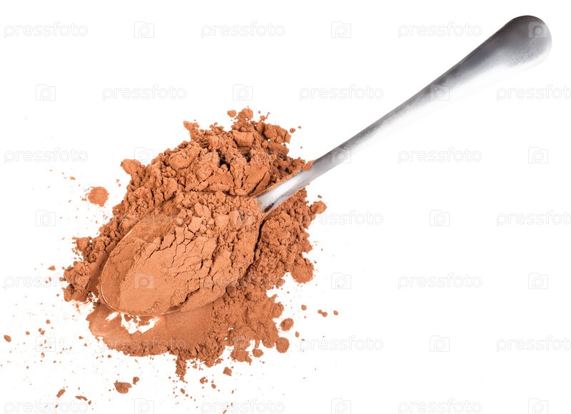 Вид сверху на кучу молотого порошка рожкового дерева в ложке