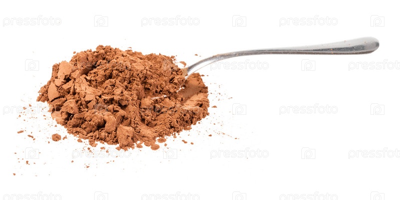 Вид сбоку куча молотого порошка рожкового дерева с ложкой