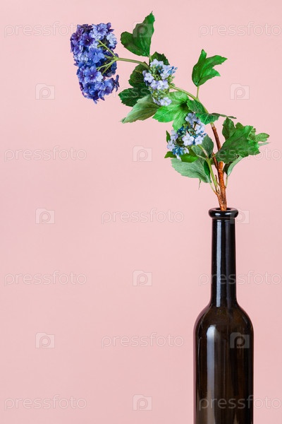 Искусственный цветок в коричневой стеклянной бутылке на розовом
