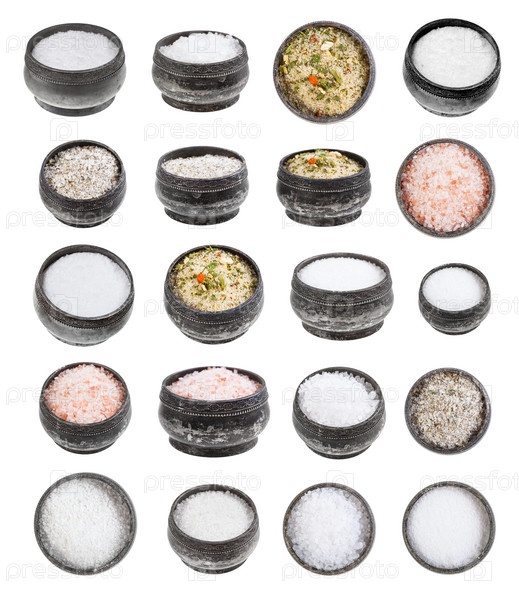 Набор серебряных солонок с различными солями