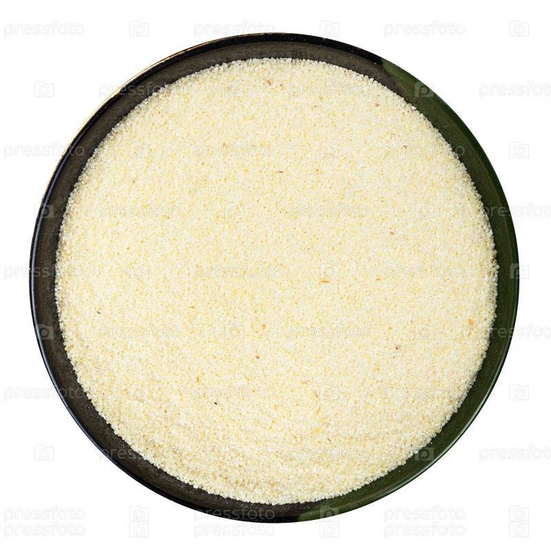 Манная крупа из мягкой пшеницы в круглой миске изолирована