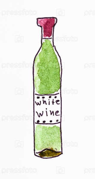 Нарисованная от руки зеленая бутылка белого вина на белом