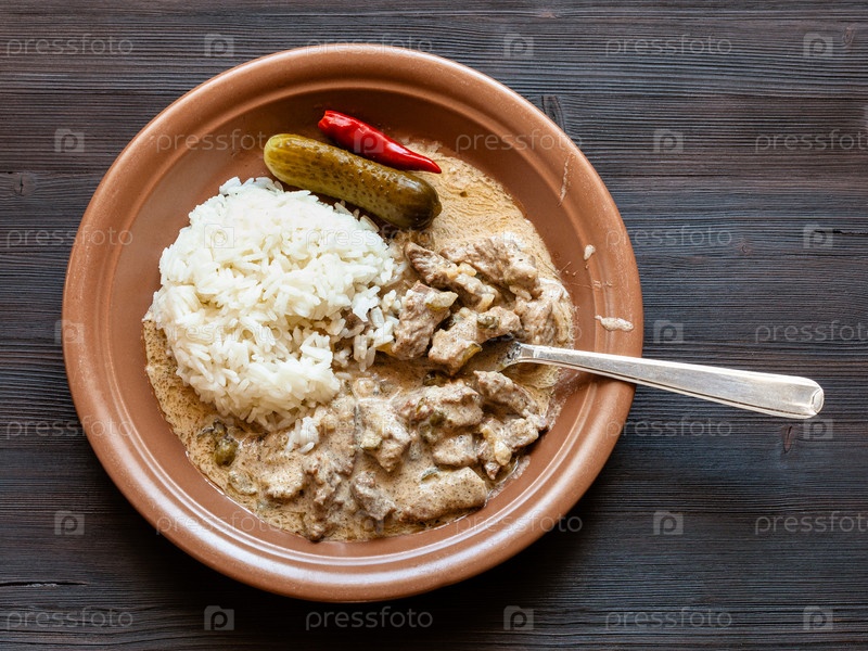 Есть бефстроганов из коричневой тарелки