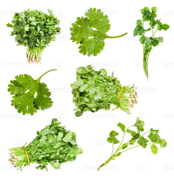 Сбор свежих трав кинзы, изолированные