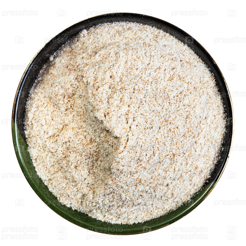 Цельнозерновая пшеничная мука в круглой миске изолирована