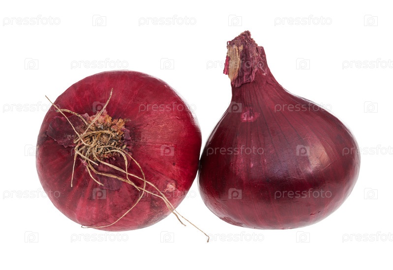 Две луковицы спелого красного лука, изолированные на белом фоне