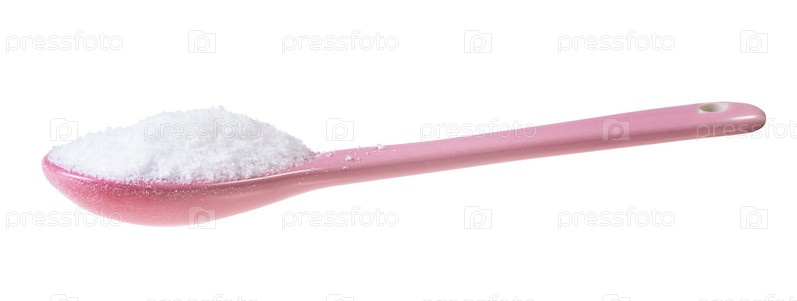 Вид сбоку на керамическую ложку с мелкой морской солью