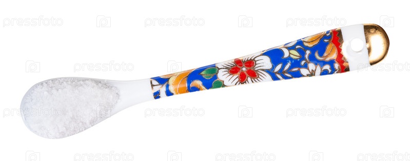 Вид сверху на китайскую ложку с мелкой морской солью