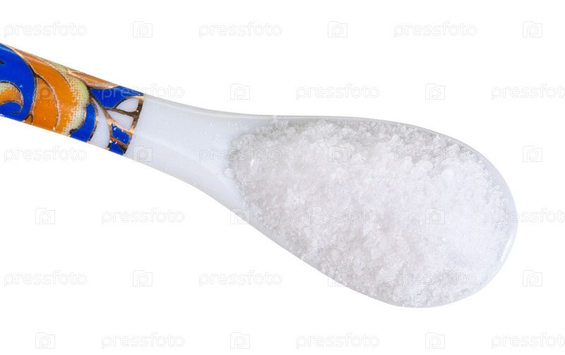 Вид сверху китайская ложка с мелкой морской солью крупным планом