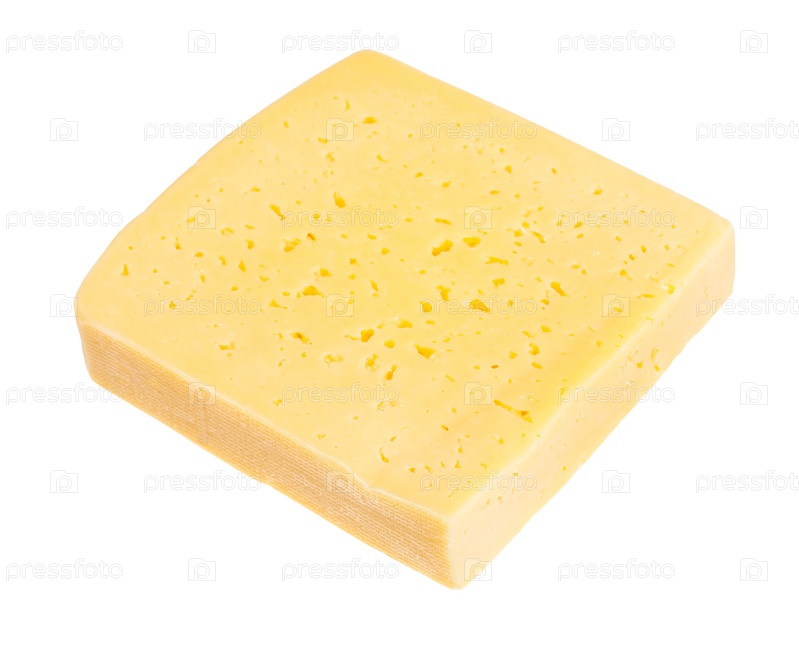 Толстый кусок желтого полутвердого сыра из коровьего молока