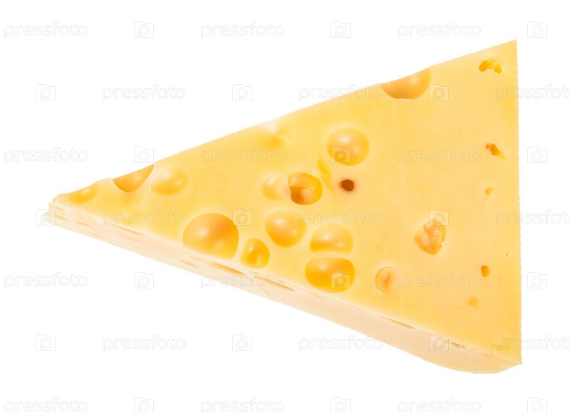 Треугольный кусочек желтого полутвердого швейцарского сыра