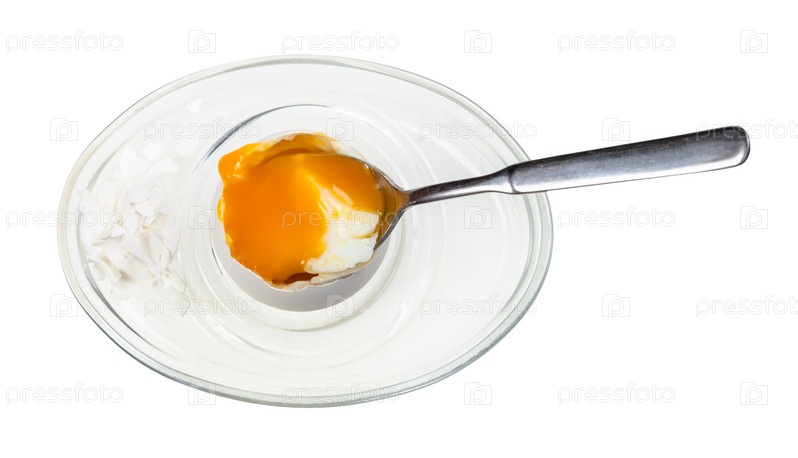 Вид сверху на поедание яйца всмятку ложкой