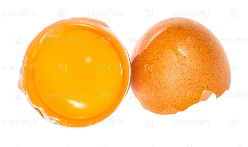 Отделенный яичный желток в скорлупе и коричневой яичной скорлупе