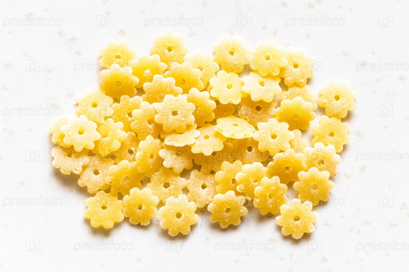 Горсть сырых кусочков пасты стелле на сером