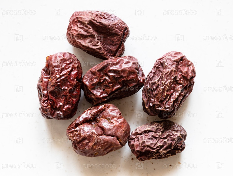 Несколько сушеных фруктов мармелад (китайский финик) на сером