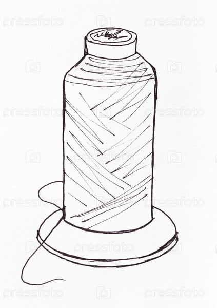 Нарисованная вручную большая катушка ниток для швейной машины