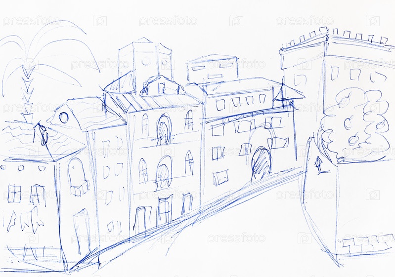 Нарисованный от руки эскиз улицы в европейском городе