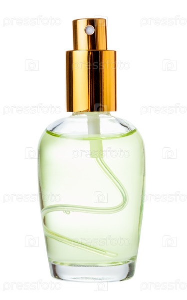 Спрей стеклянная бутылка с духами, изолированные на белом фоне