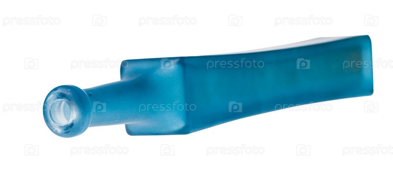 Лежащая пустая бутылка из матового синего стекла изолирована