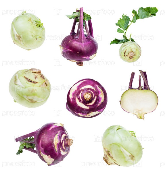 Набор различных свежих луковиц кольраби, изолированных