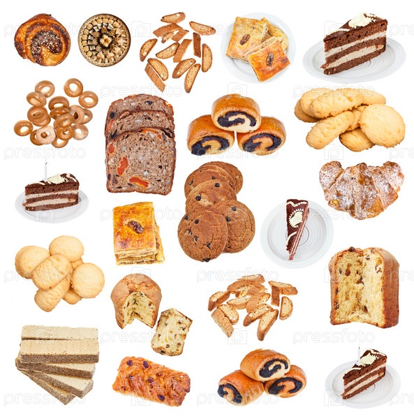 Коллекция из различных кондитерских изделий, изолированных на белом