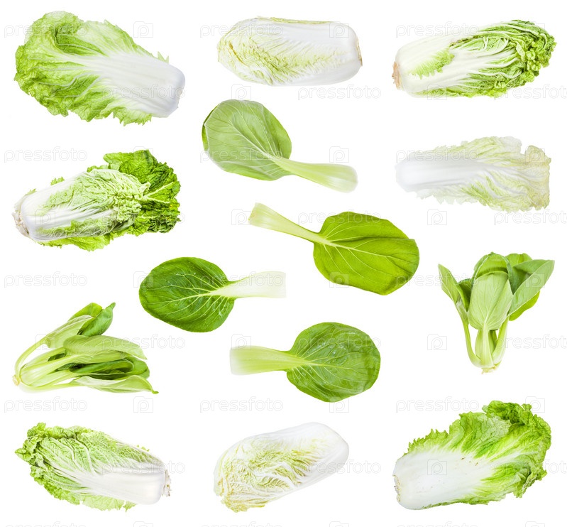 Различные китайские капусты, изолированные на белом фоне