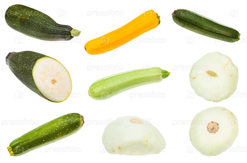 Различные кабачки и кабачки, изолированные на белом фоне