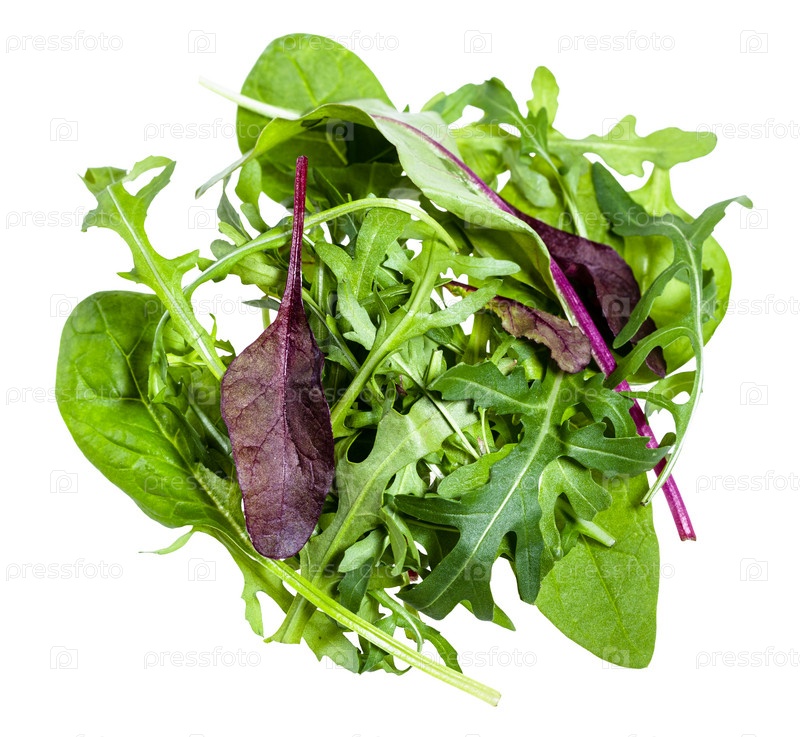 Смесь ассорти из мелкой молодой салатной зелени, изолированная
