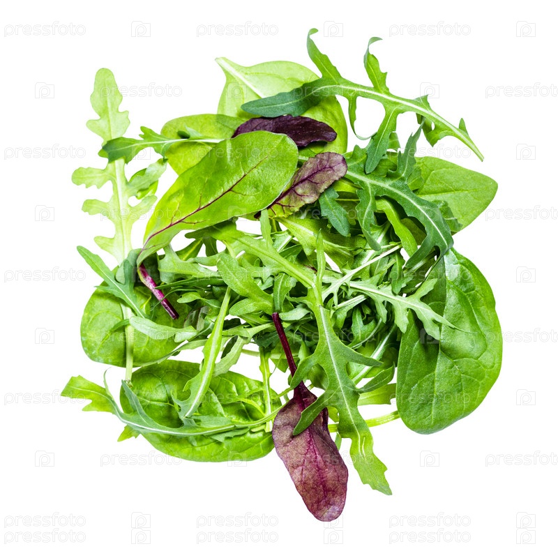 Смесь ассорти из зелени салата, выделенная на белом