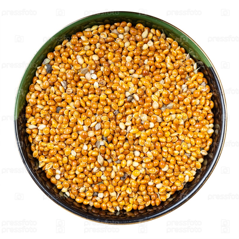 Необработанное просо просо в круглой миске изолировано