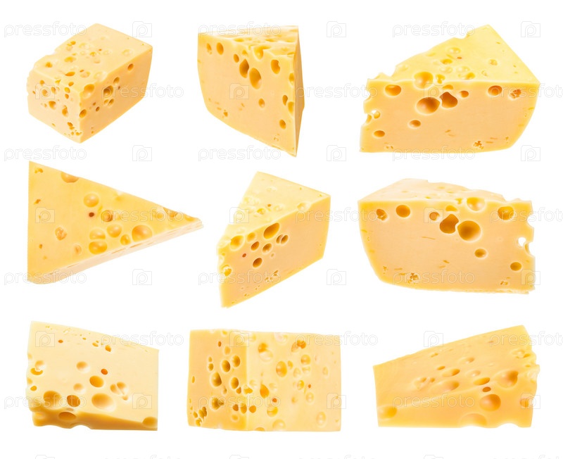Набор из кусочков желтого швейцарского сыра средней твердости