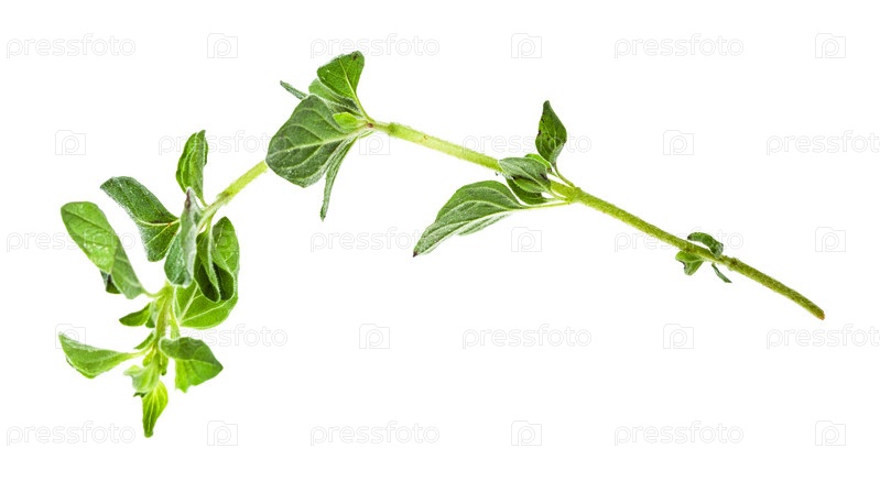 Побег свежей травы орегано, выделенной на белом