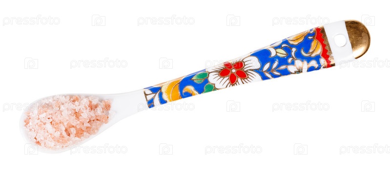 Вид сверху на китайскую ложку с розовой гималайской солью