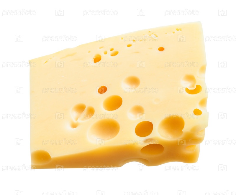 Треугольный кусок желтого швейцарского сыра средней твердости