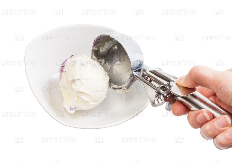 Положить шарик мороженого в миску с помощью ложки