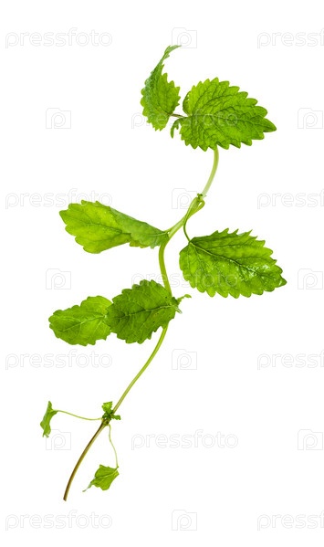 Изолированная зеленая веточка травы мелиссы