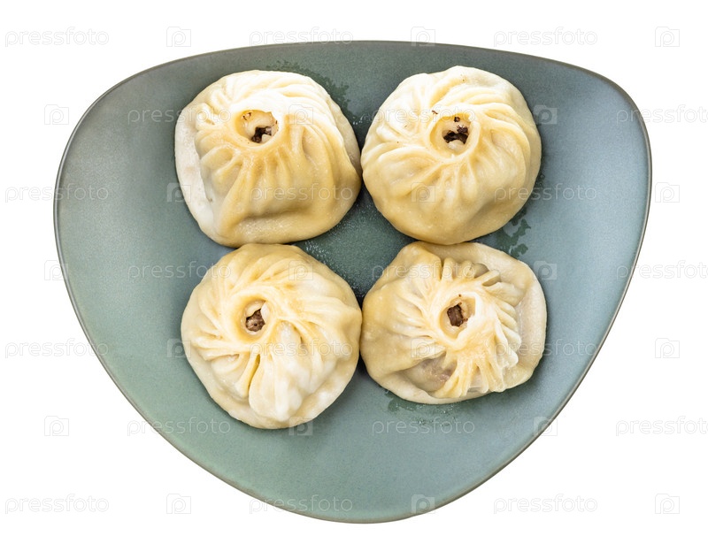 Вид сверху на паровой бууз на зеленой тарелке изолирован