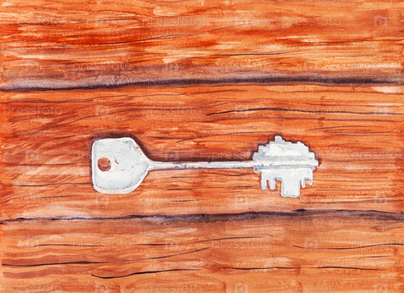 Раскрашенный вручную ключ от двери на деревянном столе