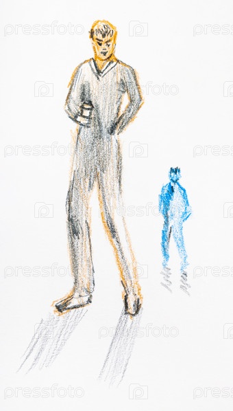 Эскиз парня с бумажным стаканчиком с кофе