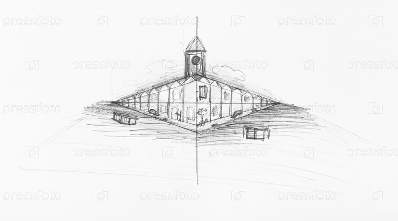 Городское здание, нарисованное вручную с линиями конвергенции