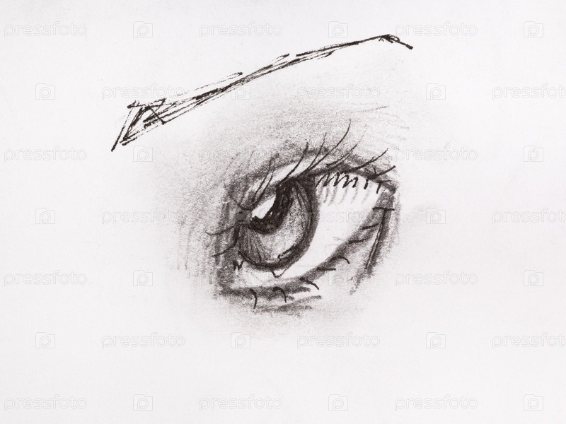 Эскиз закатанного глаза, нарисованный черным карандашом