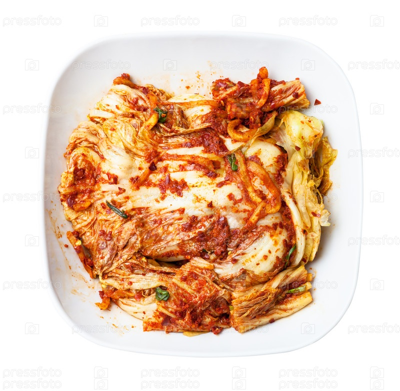 Вид сверху на кимчи в белой миске изолирован