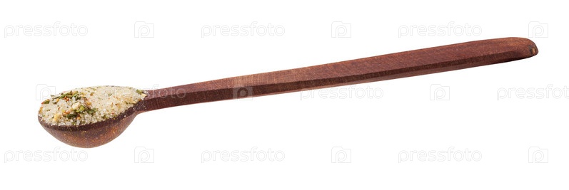 Вид сбоку на деревянную ложку с приправленной солью