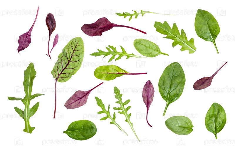 Много свежих листьев изолированных листовых овощей