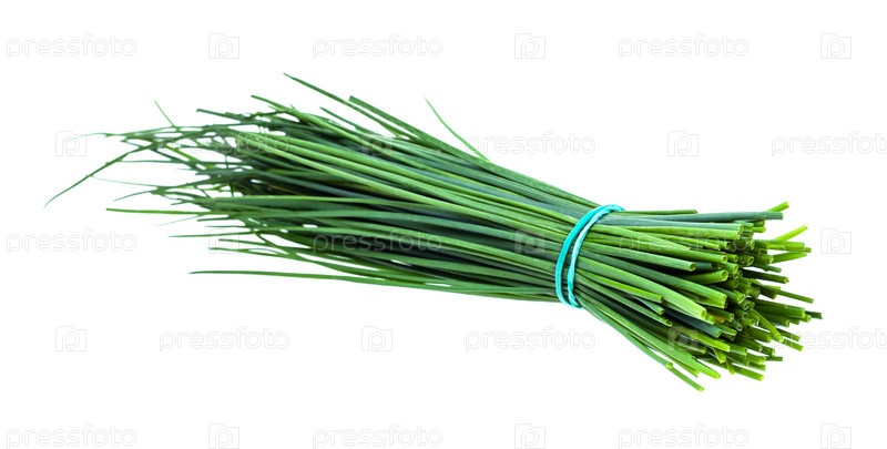 Пучок свежих листьев зеленого лука, изолированных на белом