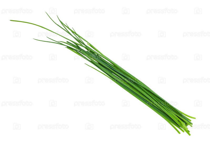 Несколько свежих листьев зеленого лука, изолированных на белом