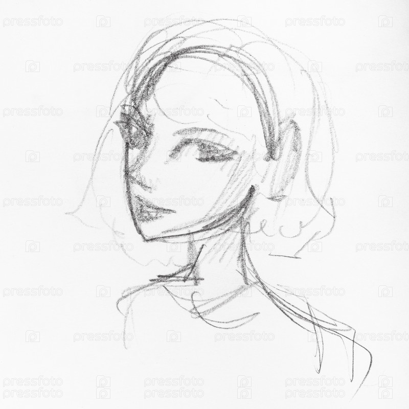 Эскиз головы девушки с веселым лицом